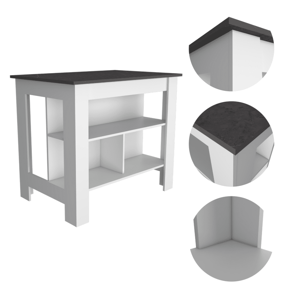 2.The Brooklyn kitchen island includes three low shelves with ample storage capacity, making it perfect for holding all of your kitchen essentials.