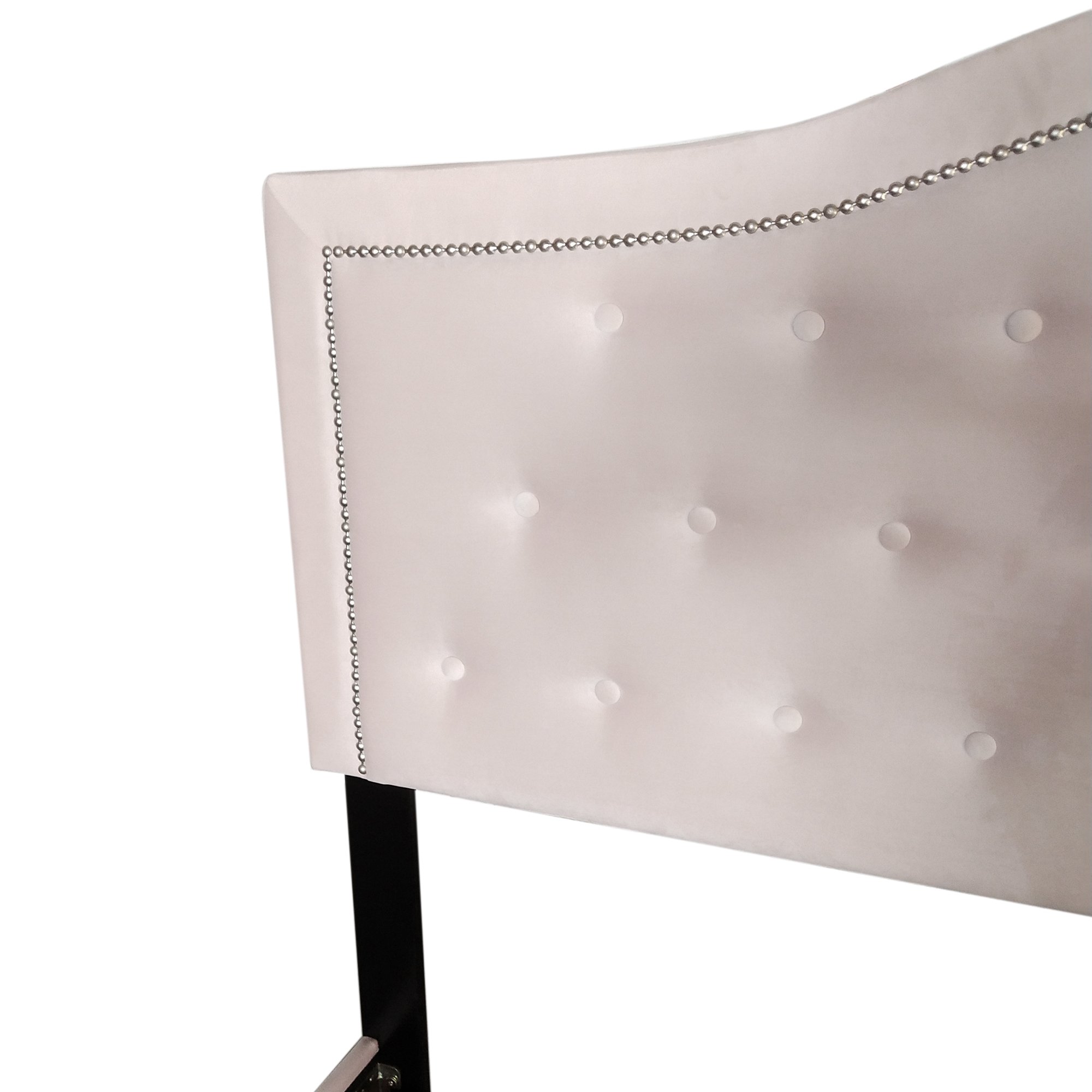 Beautiful and elegant styling on this modern upholstered bed-in-a-box. The sturdy slats and support legs create a solid foundation for your box spring and mattress. Button tufting and nail head detailing on the crown-shaped headboard lend an elegant air of high-end design. A perfect piece for a principle bedroom or child's room.