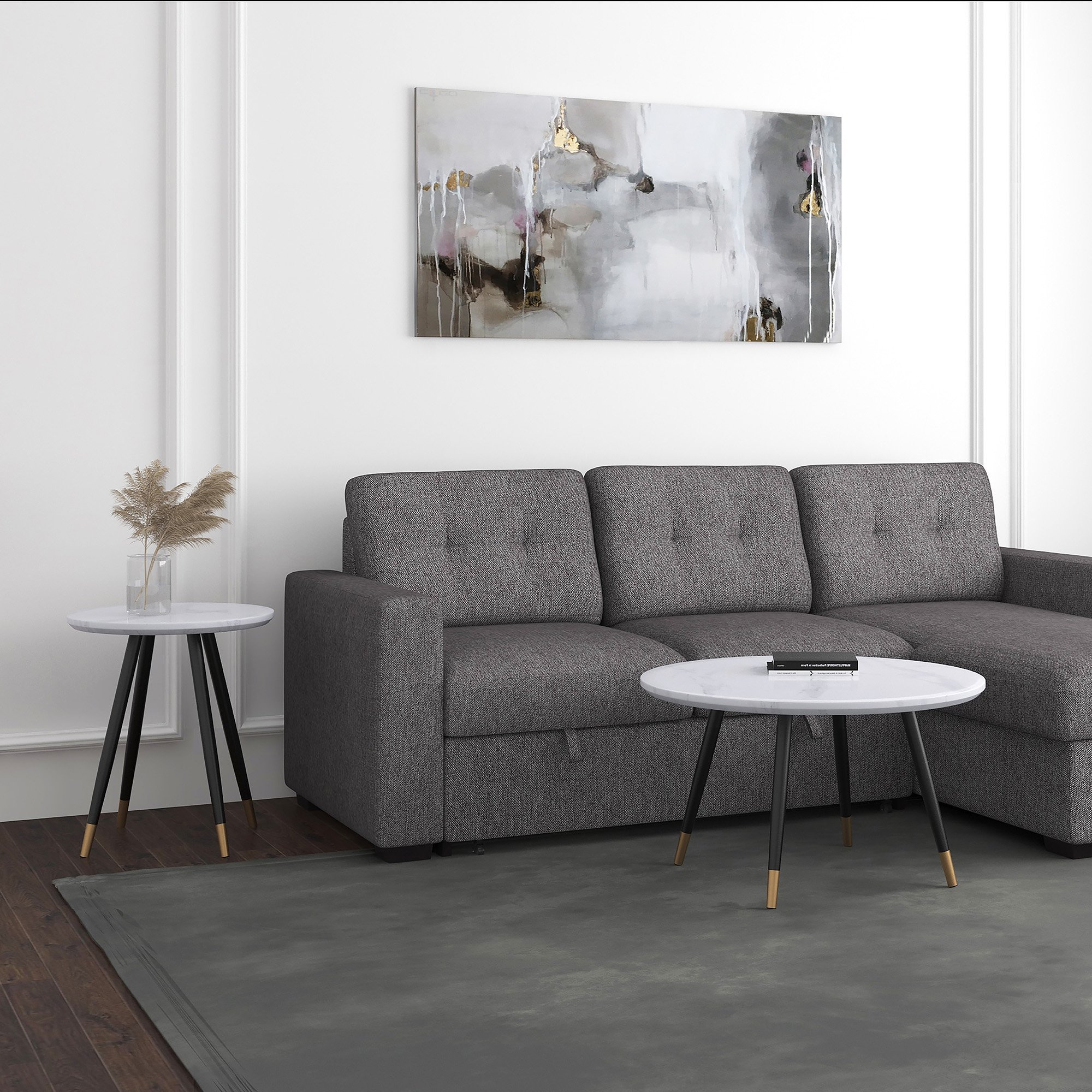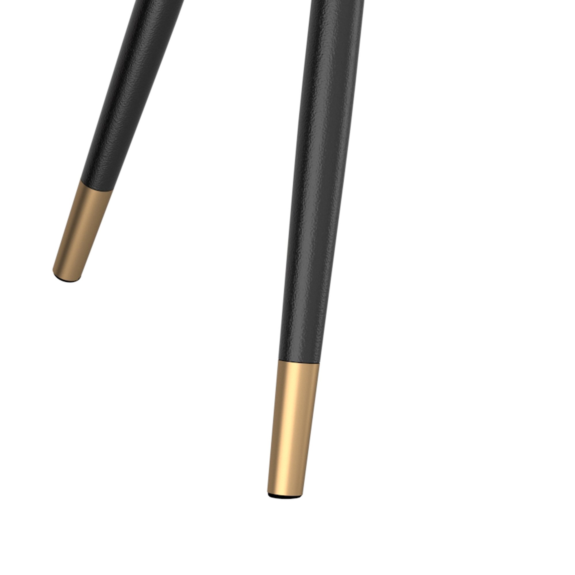 Clean, contemporary, marble-look accent table brings a true designer feel to your space. The A-line black metal legs have an aged gold accent that elevates this piece to couture status. Great as a bedside table, in a hallway, or with coordinating pieces around a sofa.