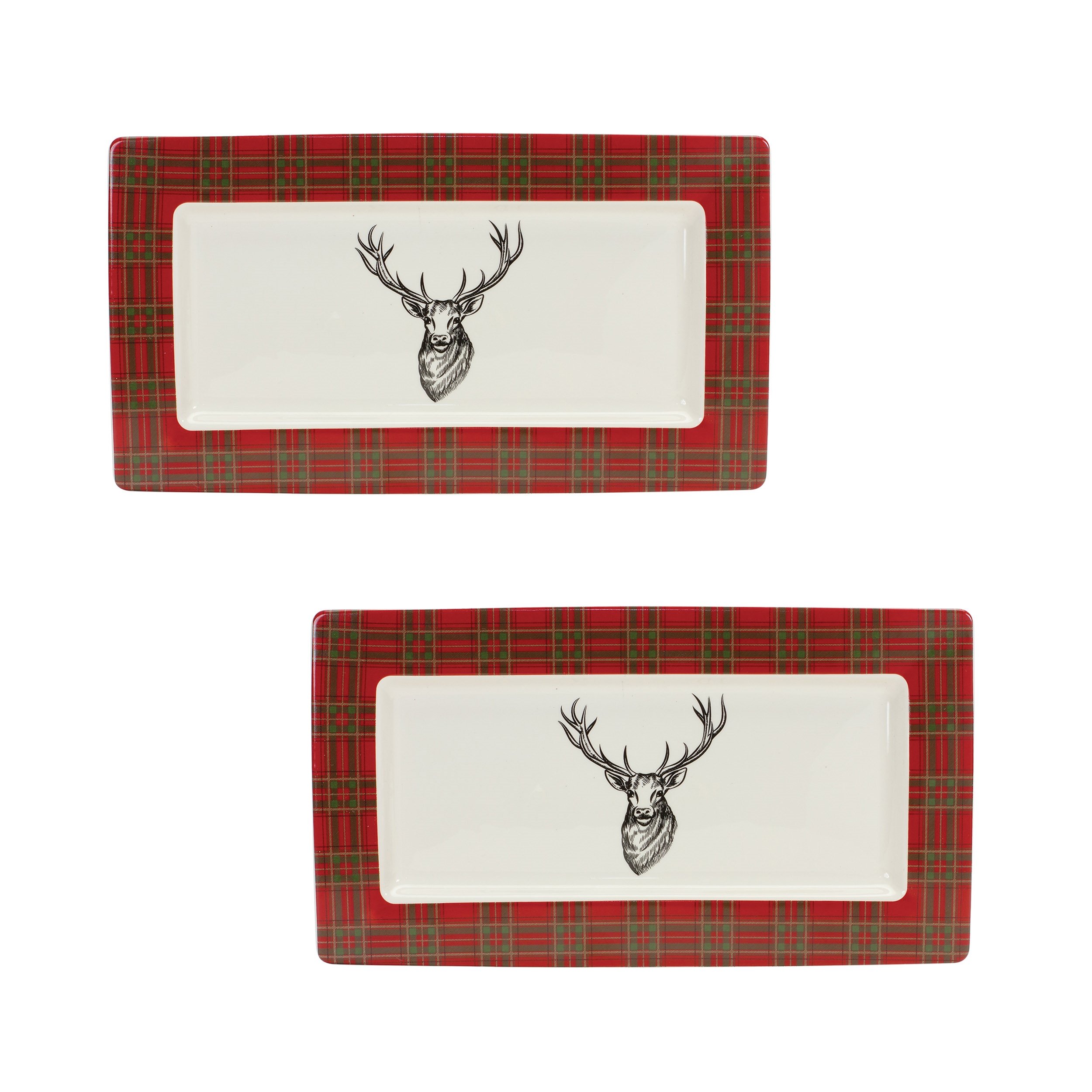 Plaid and Deer Platter (Set of 2) 13.25"L x 7.5"W x .75"H Ceramic Plaid and Deer Platter (Set of 2) 13.25"L x 7.5"W x .75"H Ceramic Plaid and Deer Platter (Set of 2) 13.25"L x 7.5"W x .75"H Ceramic