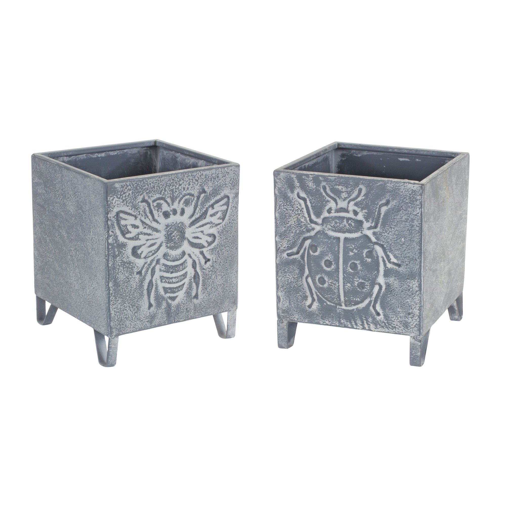 Welcome the spring season with this adorable set of Insect Planters. Featuring two assorted sizes, the insect designs include bumble bee and lady bug. The traditional white and grey tones paired with the weathered finish is the perfect combination to create a timeless spring display. The quality iron metal composition is sure to last for seasons to come. Complete the look by adding a potted plan or floral arrangement to each pot.