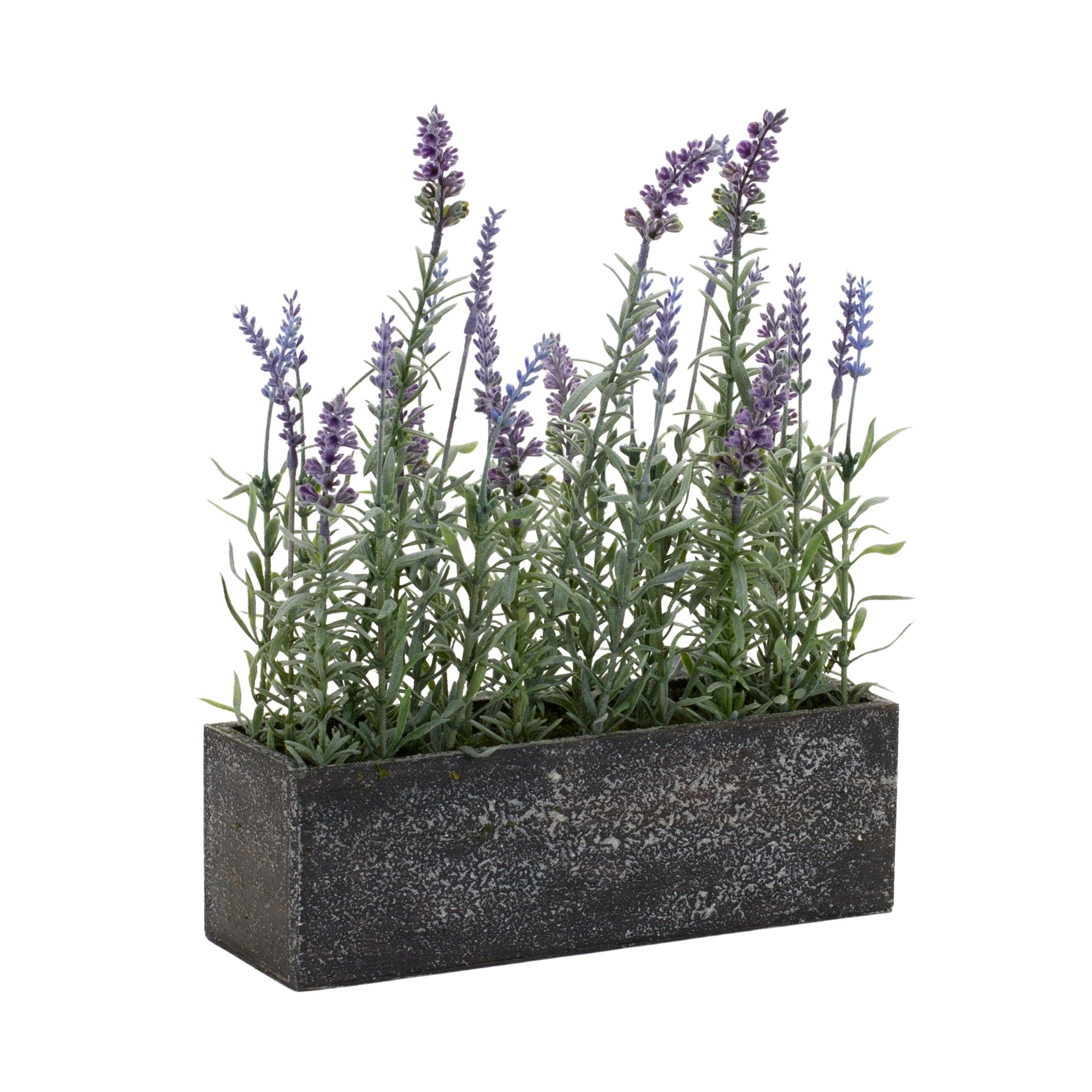 Add a touch of nature to your home with this beautiful tabletop Potted Lavender Arragement. Featuring two pieces, the bright purple and green hues paired with the weathered box planter accent is the perfect combination to create a stunning display. The quality plastic composition is sure to last for seasons to come. Display the pieces together to make a statement, or display them alongside other decor to add a natural pop of color.