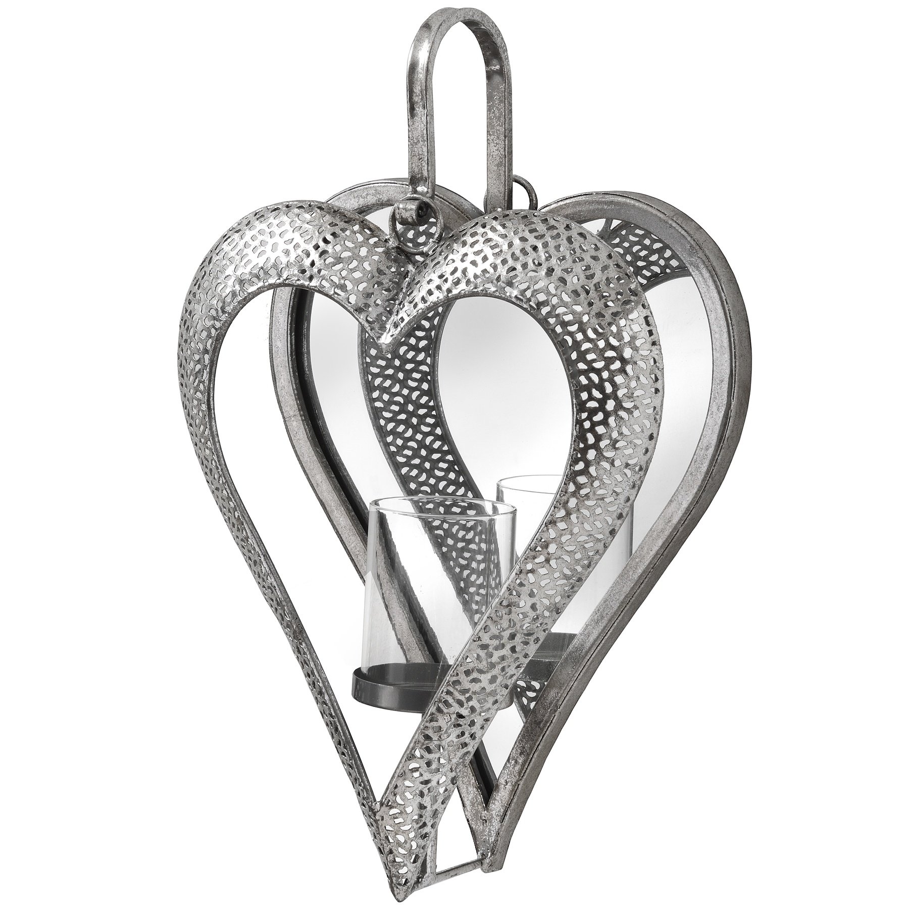 Antique Silver Heart Mirrored Tealight Holder in Small Antique Silver Heart Mirrored Tealight Holder in Small