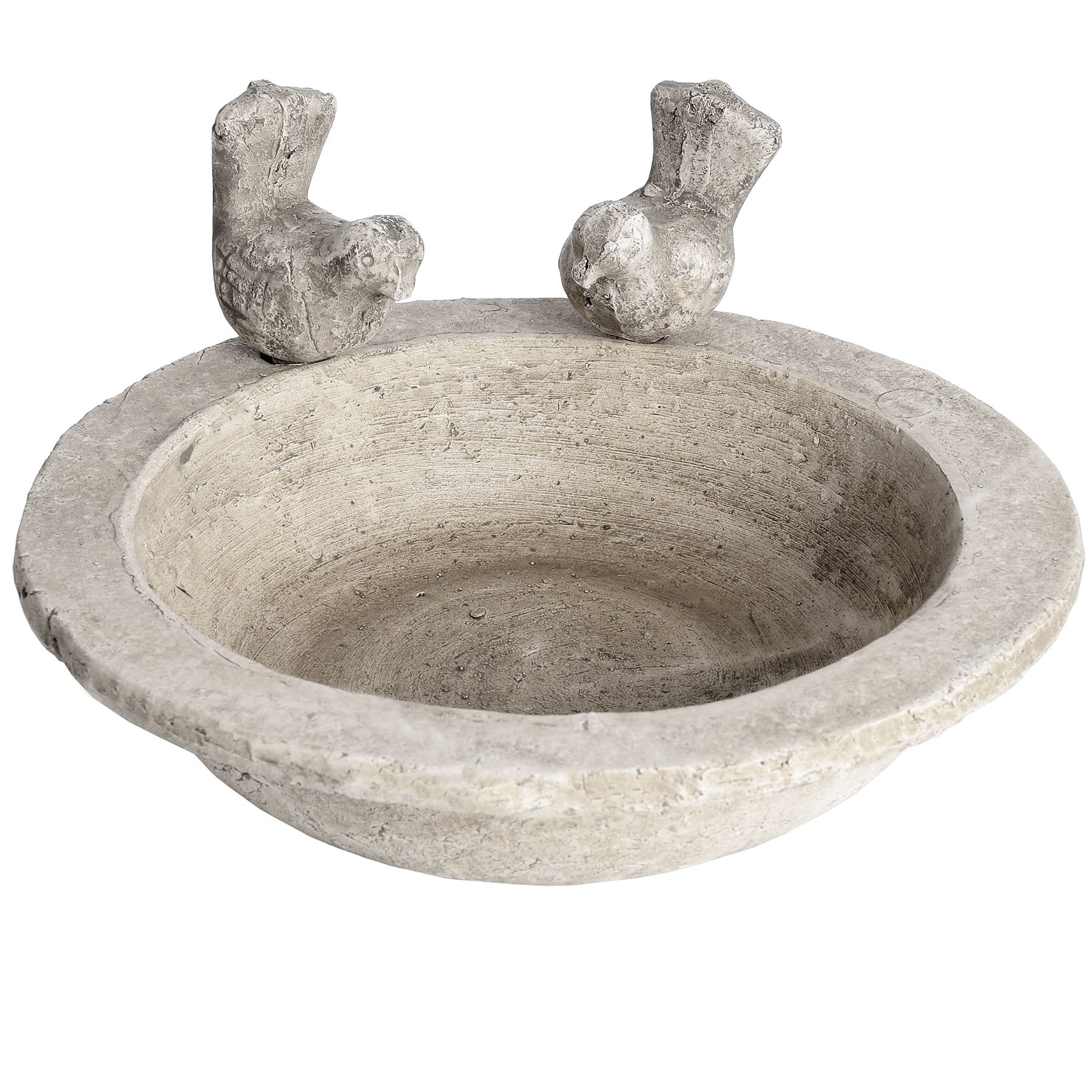 Stone effect bird bath with antiqued finish. Smaller size, but see also item 9029. Not 100% weatherproof.