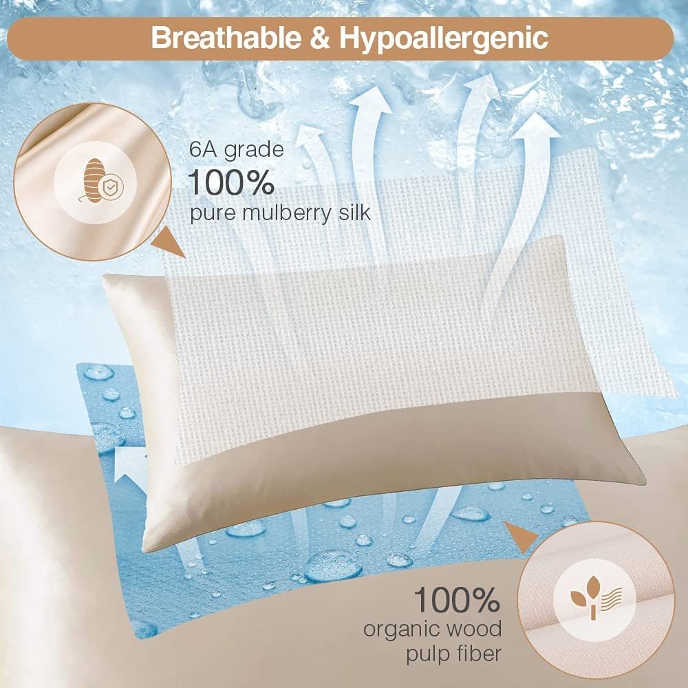 The combination of 100% pure silk and wood pulp fibers provides you with two sleeping experiences.